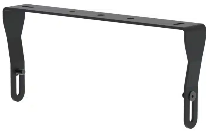 The BRKVR5HOR is a bracket for mounting a single VR5 monitor in horizontal position. The yoke is connected to the cabinet with two steel strips on the side of the cabinet, secured with two M10 bolts each. The bracket can be wall/ceiling mounted through two 8mm/0.3-in holes; The bracket can be fitted with an optional truss clamp, TV-spigot or STMT stand-mount adapter, with M10 (2) or M12 (1) bolt/nut connection. Please refer to VR5 product manual for more information.
