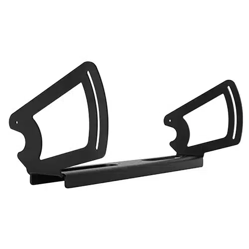The BRKRR12HOR is a bracket for mounting a single RR12 point-source module in horizontal position. The bracket is connected to the cabinet with four M8 knob bolts and is + 20° / – 20° adjustable.