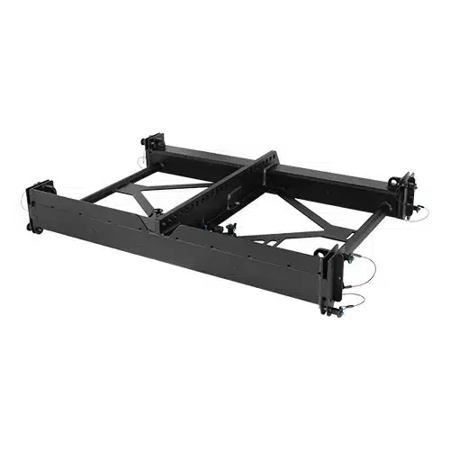 The grid can be suspended from multiple hoist options on top of the grid or with the central “single pick-point” bar for smaller arrays (all points 14mm/0.55-in for 1,5T shackles).
