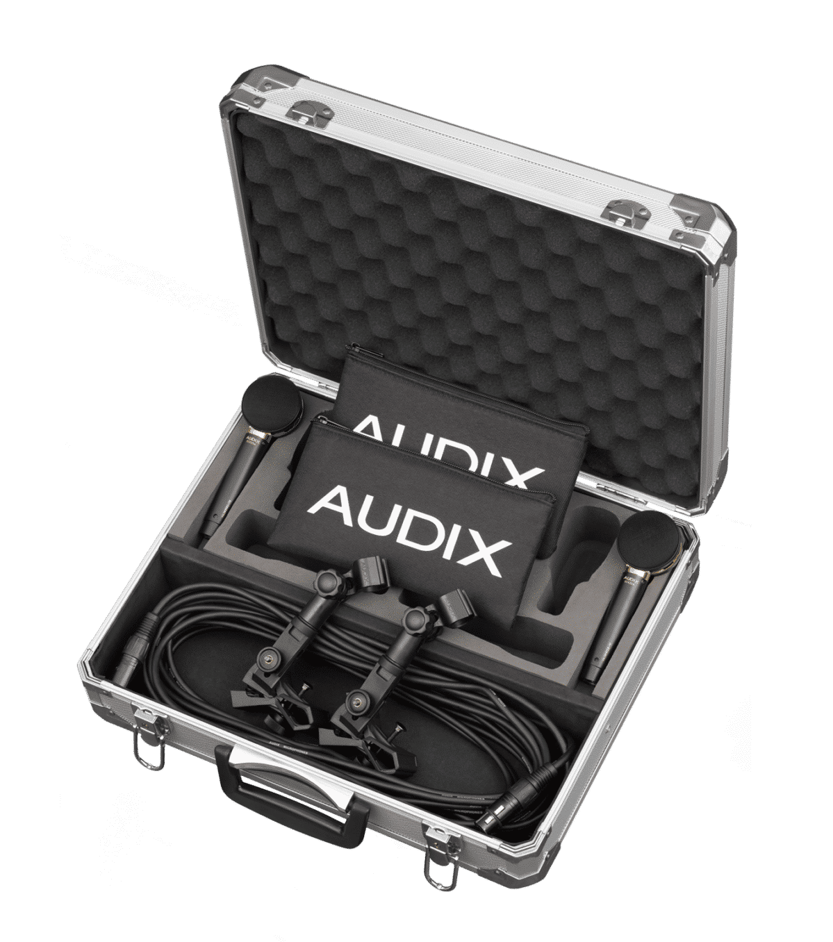 Audix SCX25APS Piano System includes 2 SCX25A condenser microphones, 2 DFLEX mounts, two 20′ studio microphone cables and aluminum case. Requires 48-52 V phantom power.