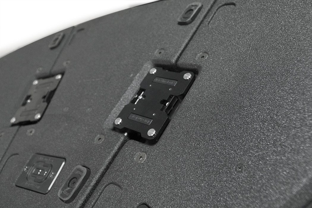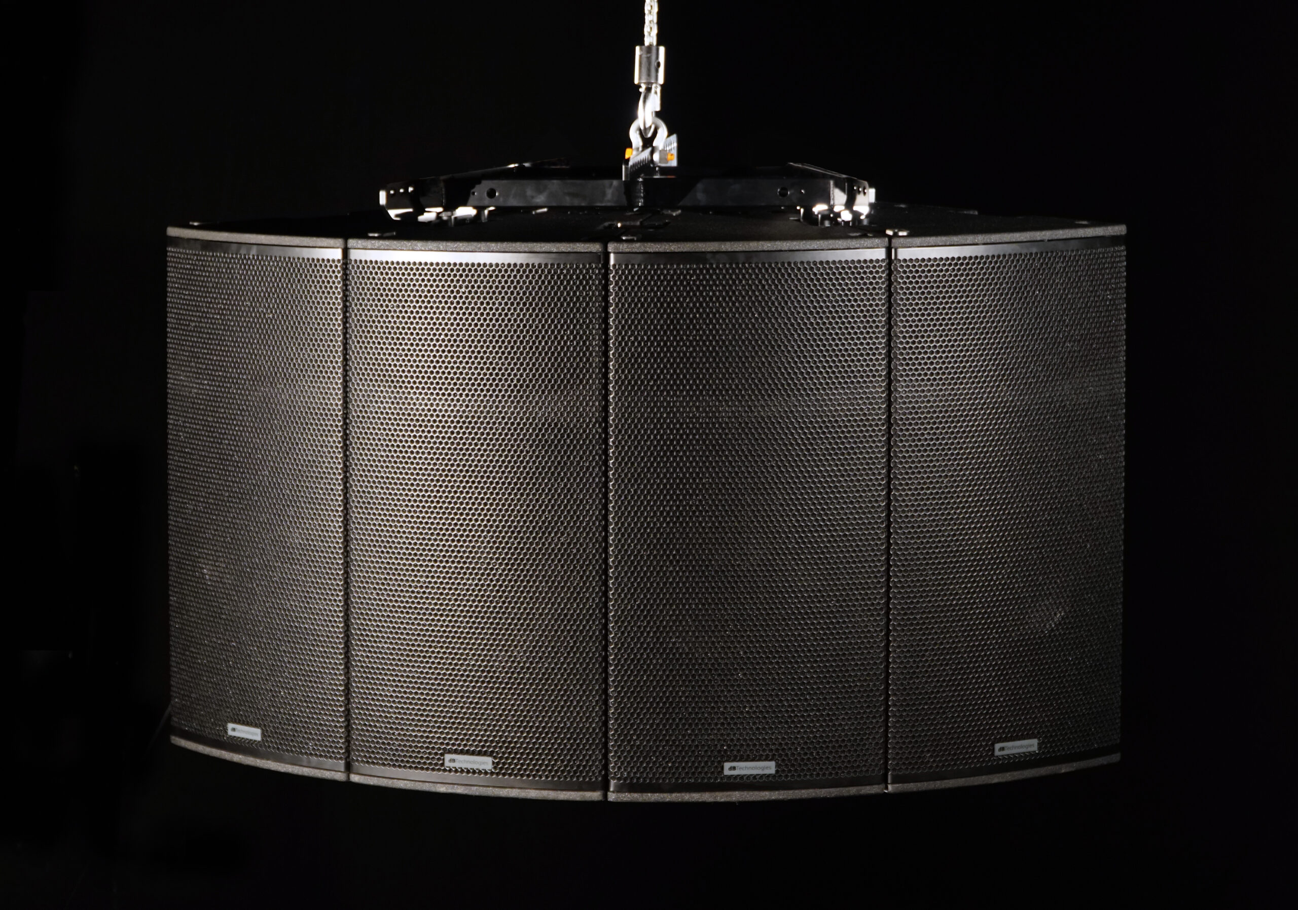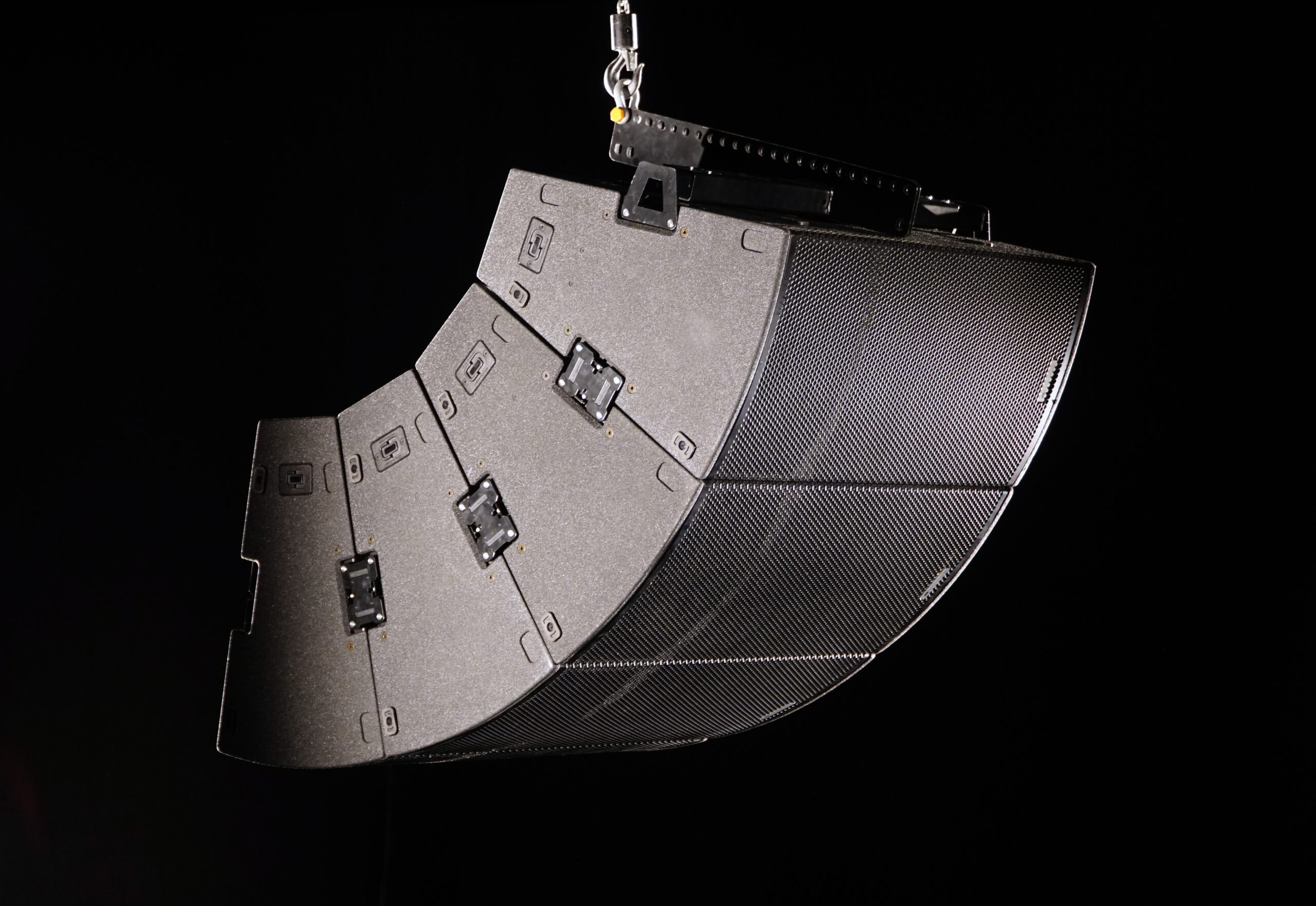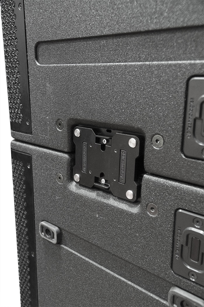 VIO C clusters can be rapidly assembled thanks to the LP-1, a metal link-plug accessory (1 is included in each VIO C unit) which links the rigging points placed on the corners of each cabinet and flown via the DRK-C fly-bar for the cluster configuration – adding the DRKL-3 fly-bar link when 3 speakers are needed and the DRKL-4 for 4 speakers – and the DRK-CCA fly-bar for the constant curvature array configuration. Enclosures are made of plywood reinforced by a black polyurea finish.