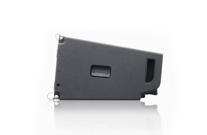 VIO L1610 is a three-way active line array system, entirely equipped with neodymium components: 2×10″ woofers (2.5” v.c.), providing an extended LF reproduction, interact with a coaxial neodymium component (4” MF plus a 2,5” v.c. HF compression driver) mounted on an exclusively designed waveguide.