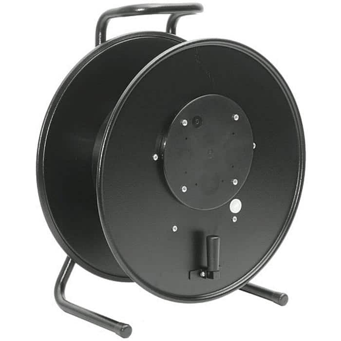 Kabeltromle i sort metal med blindplade