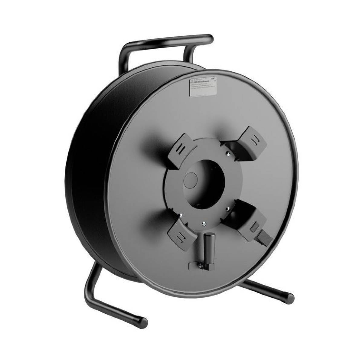 Kabeltromle i sort metal med krave for oprul