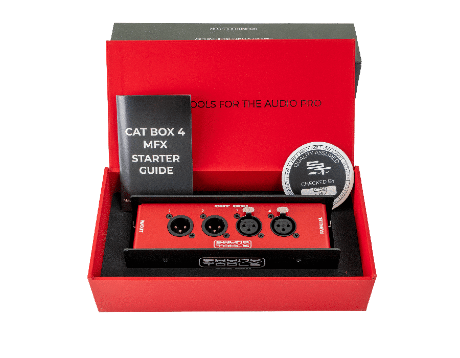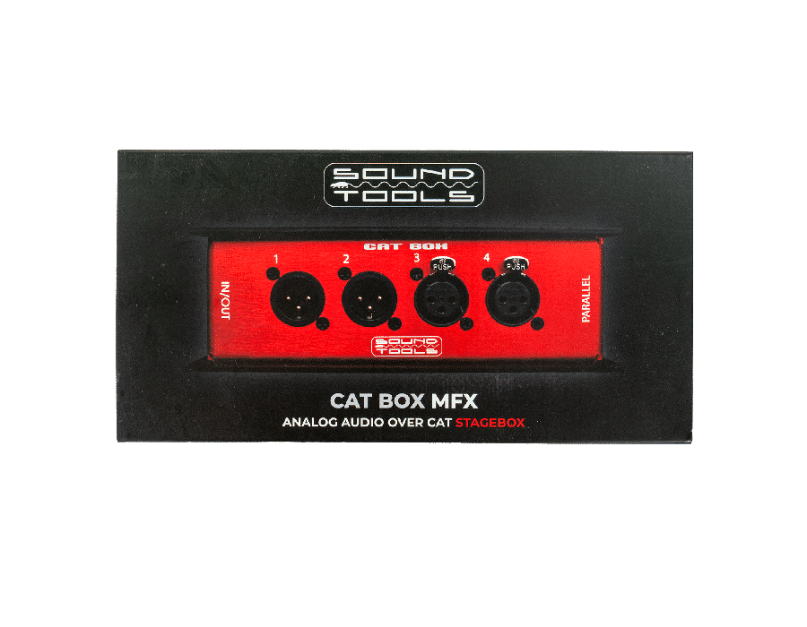 The SoundTools CAT Box is a stage box unit that allows you to run mic level, line level analog, AES3, DMX and/or com down a single Cat5e, Cat6, or Cat7 cable.