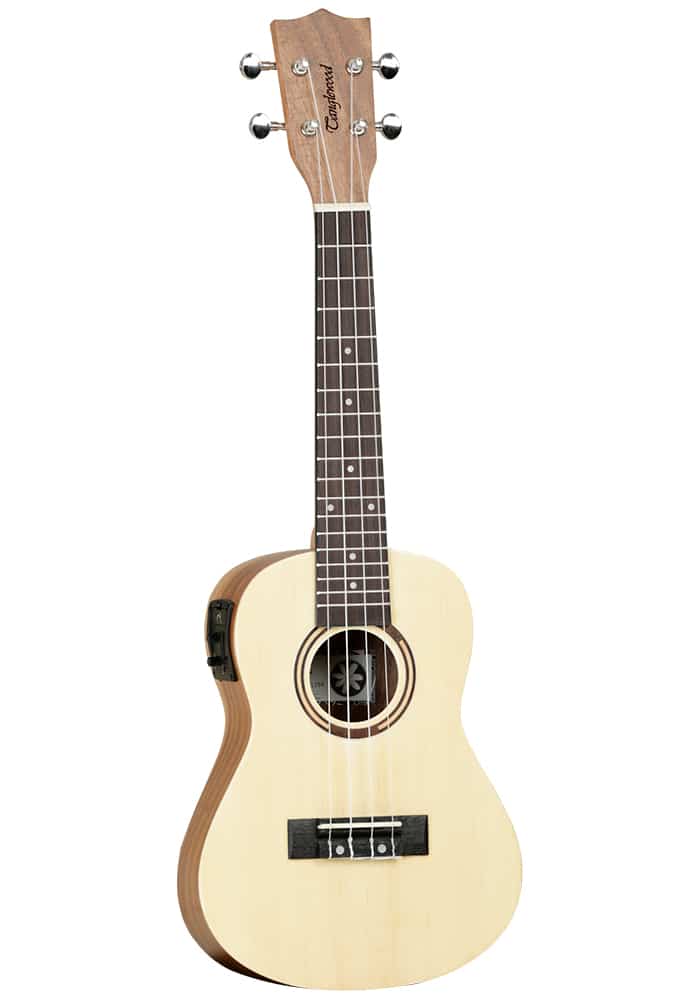 Tanglewood TWT9E Concert with Tanglewood TQ3 PLUS EQ System, Spruce and Figured Koa with Genuine Timber Inlaid Rosette, Aquila Strings in Padded Gig Bag
