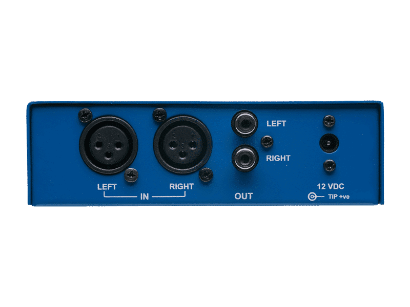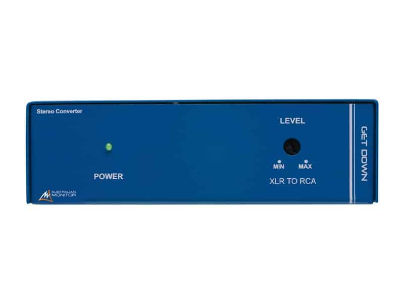 The GET DOWN stereo converter converts a professional live level balanced audio signal to an unbalanced domestic level signal.